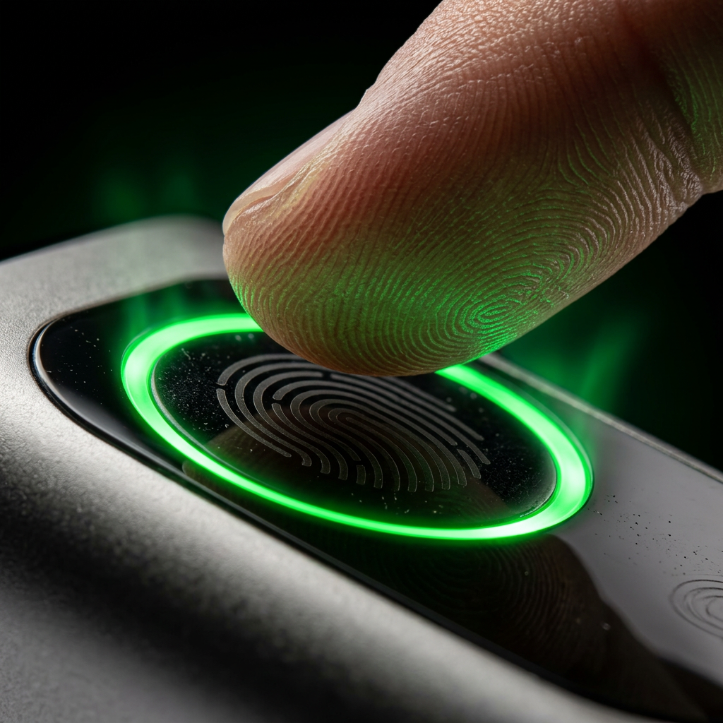 Méthodes d'accès : Empreinte digitale, code numérique (clavier tactile), carte RFID, application mobile (Bluetooth) et clé mécanique de secours.