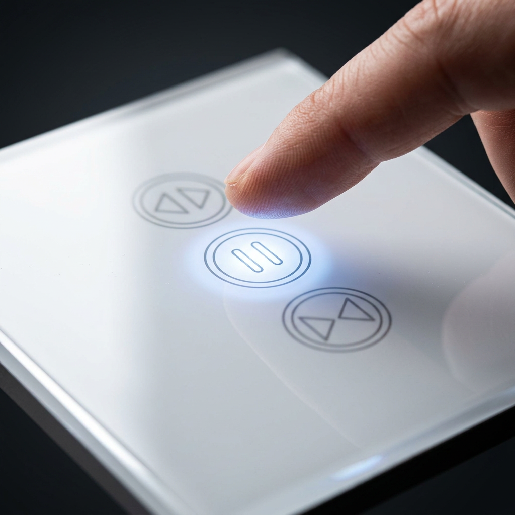 Installation sur moteur électrique rideau/volet ; contrôle via app/voix/tactile pour ajustement précis et programmation horaire. Vérification statut ouverture à distance via mobile.